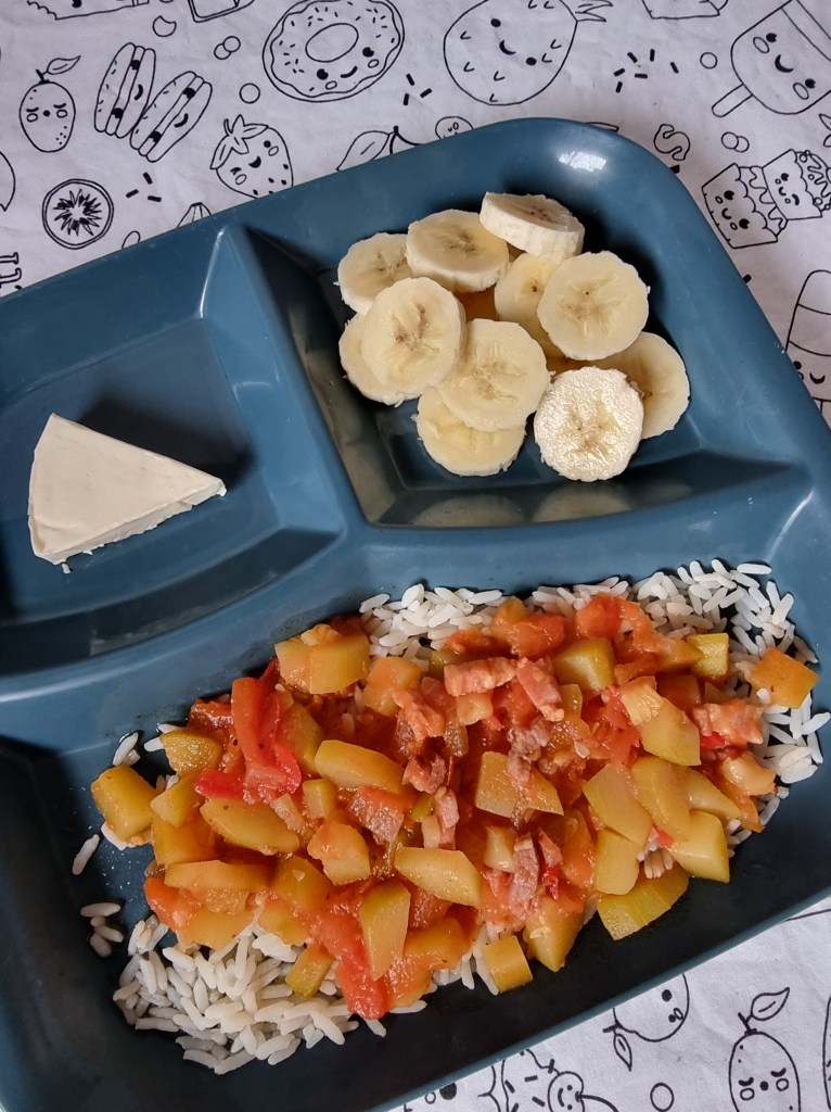 - Lardons, ratatouille et riz