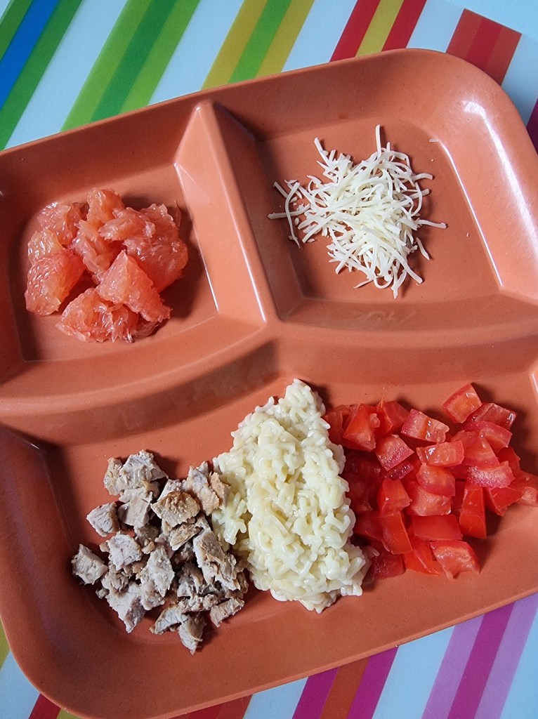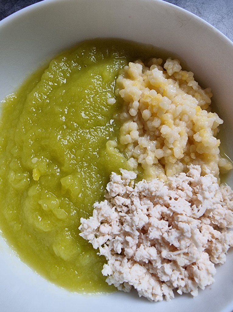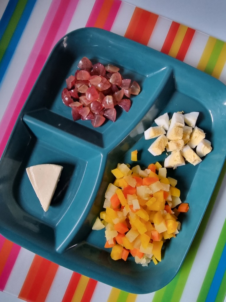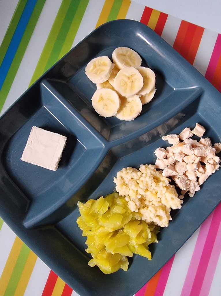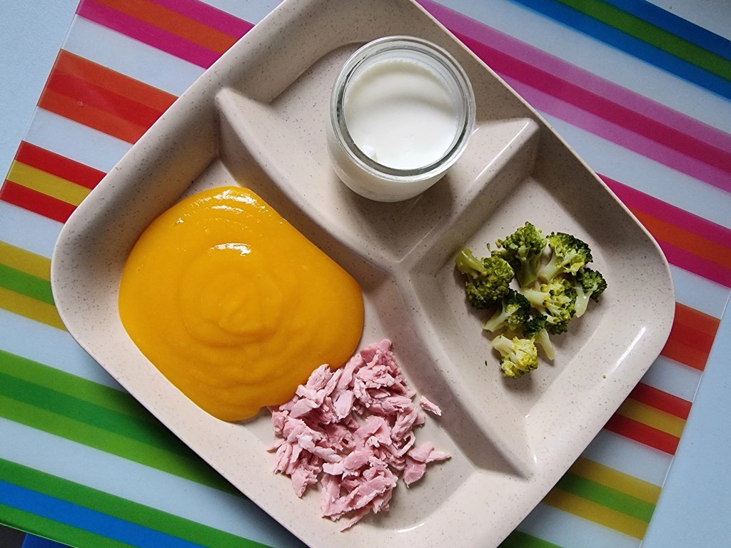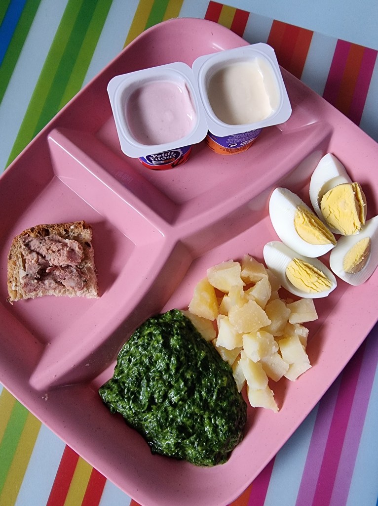 Attention, chaque enfant est différent…. Je propose des idées, ce ne sont pas des recommandations, fiez vous aux habitudes et capacités des enfants pour les textures et pour les ingrédients! Ici je fais selon mes p’tits accueillis 😉