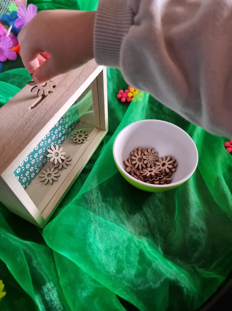 Voici notre bac d’exploration sur les fleurs, avec divers activités à réaliser!