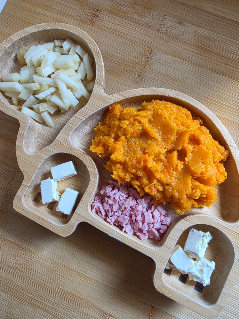 - Jambon, purée de patates douces/carottes