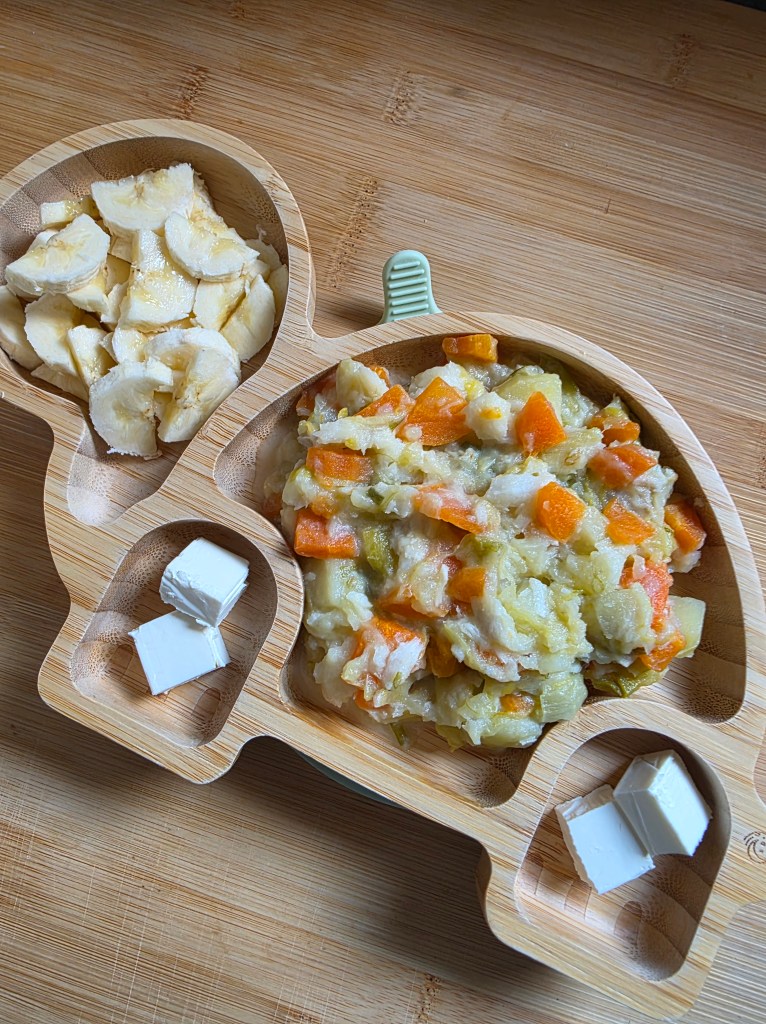 - Cabillaud, poireaux/pommes de terre/carottes