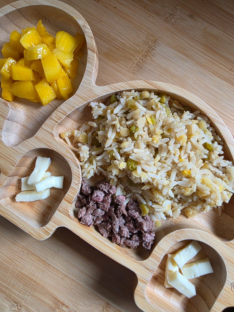 - Steak de boeuf, riz/lentilles/pois